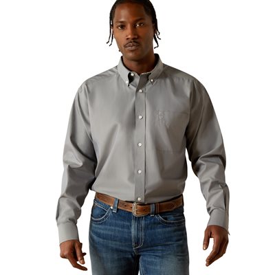 Chemise Western Classique Ariat Wrinkle Free Solid Pinpoint Oxford pour Homme - Gris