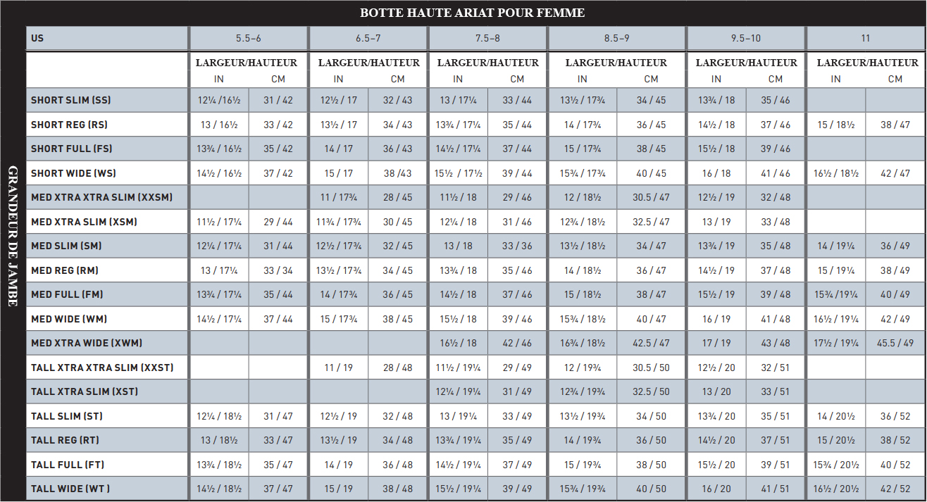 Clause de non-responsabilité: Ce tableau est uniquement un guide et ne constitue pas une garantie quant à l'ajustement.