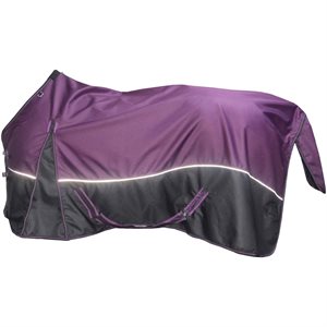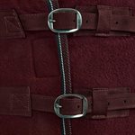 Une double fermeture frontale avec boucles et bandes auto-agrippantes, ainsi que des sursangles en X et un cordon de queue, maintiennent la couverture en place. De jolis passepoils le long de la bordure s'harmonisent parfaitement avec les couleurs de la couverture.