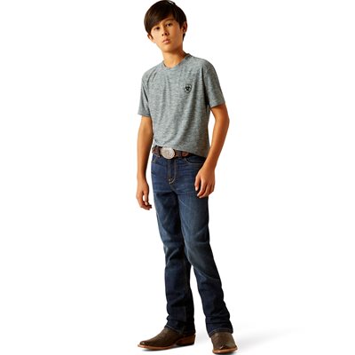 The comfortable, durable jeans Ariat is known for—in his perfect size. The loose-fitting Ariat B4 Rolland western jean is made for riding, playing, or just running around.