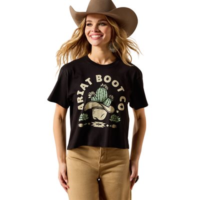 Ariat Ladies Cacti Cowboy Hat Crop T-Shirt - Black