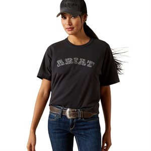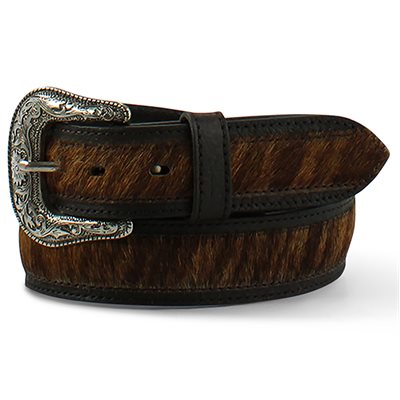 This ladies Ariat western belt has a beautiful calf hair center with black trim running the length of the strap.
