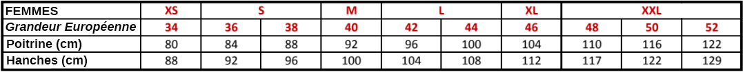 Clause de non-responsabilité: Ce tableau est uniquement un guide et ne constitue pas une garantie quant à l'ajustement.