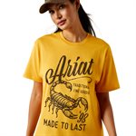Look classique. Style Ariat pour tous les jours. Confectionné en coton doux, avec une coupe légèrement ample, le t-shirt Ariat Scorpion Script pour femme présente des manches plus longues pour pouvoir être retroussées et une longueur supplémentaire pour pouvoir être rentré dans le pantalon.